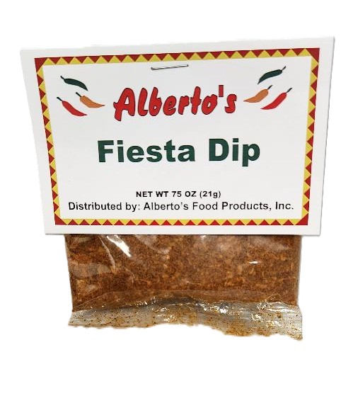 Alberto’s Fiesta is our spiciest. It’s got a kick but it is not as hot as a habanero. It is great over cooked pasta like a spicy alfredo, on a baked potato, or on a sandwich but, it is a dip so enjoy with chips or veggies.